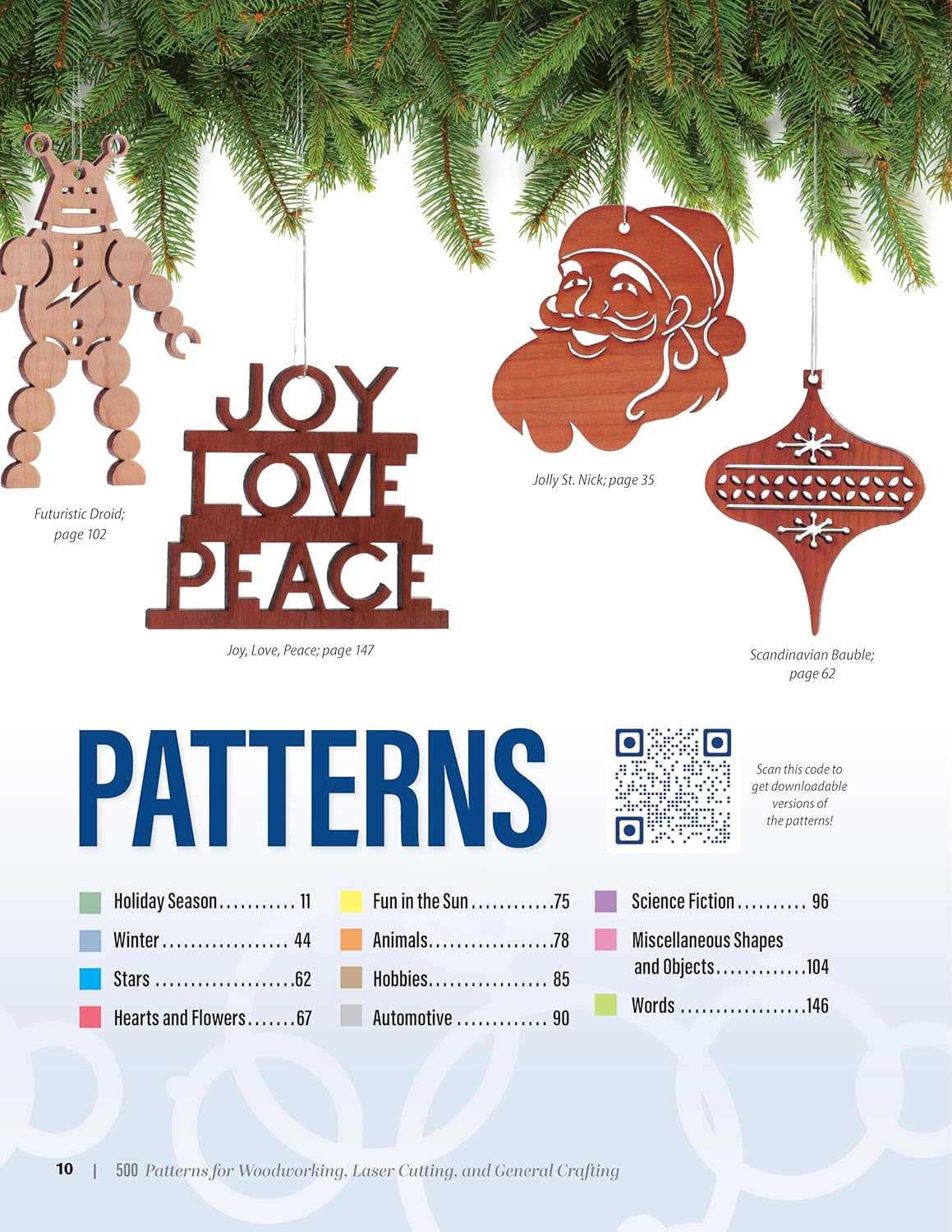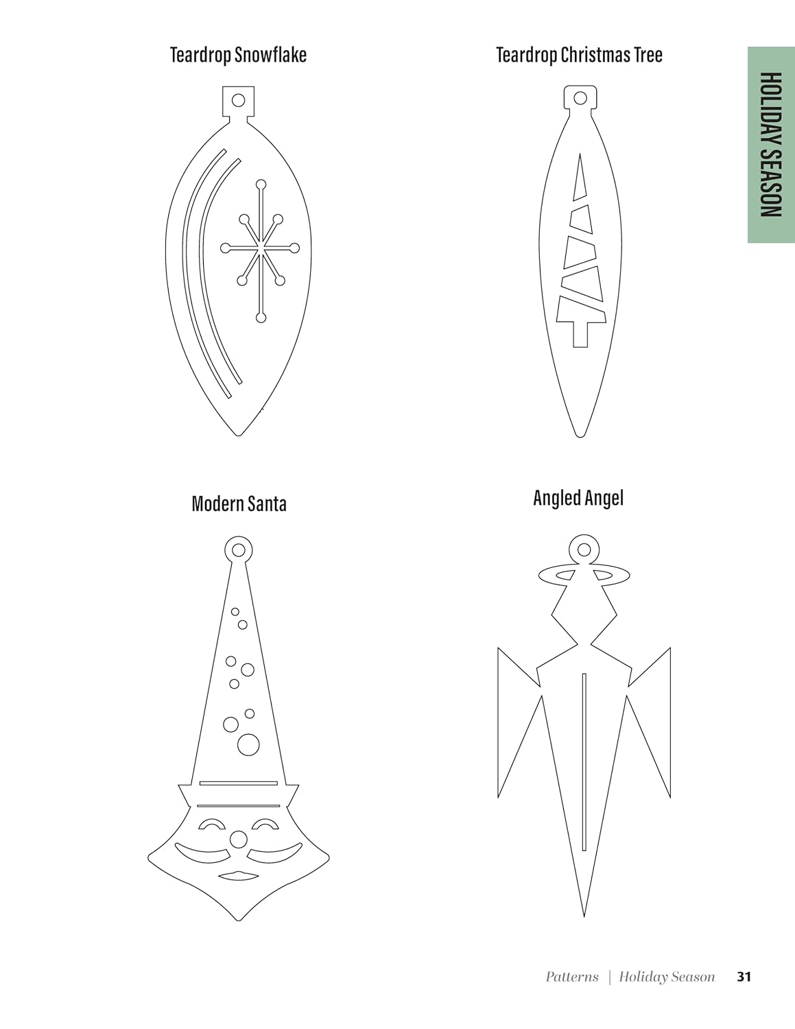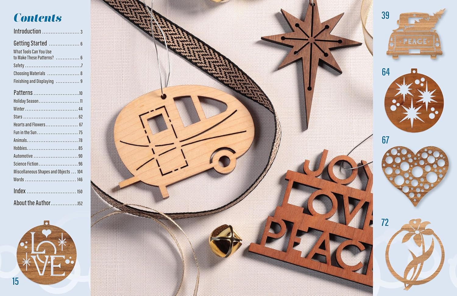 Then, jump into tons of instructions and patterns for 500 beautiful ornaments that have a minimalist, European flair. Each project is a simple fretwork that can be easily stack cut to save time and includes everything from traditional-looking baubles to more modern trees, reindeer, vehicles and more. Each fretwork project can be cut in just 15-20 minutes on your scroll saw!