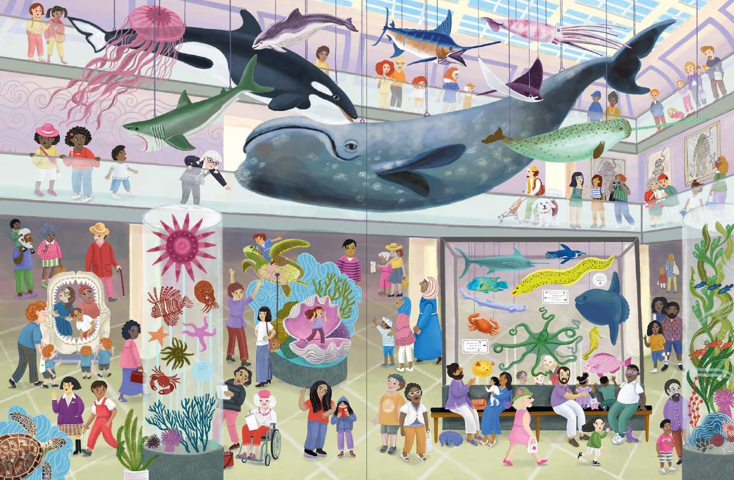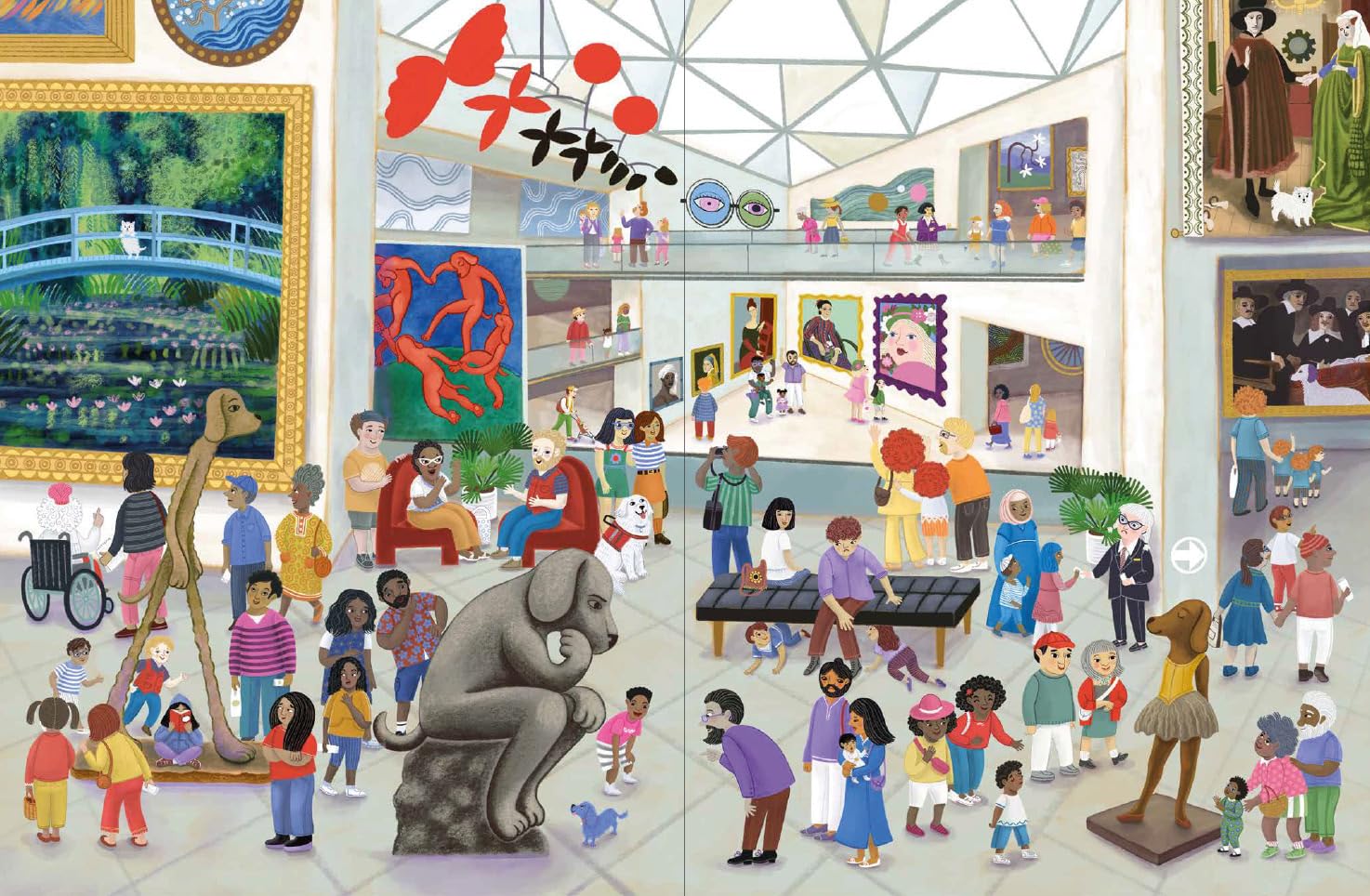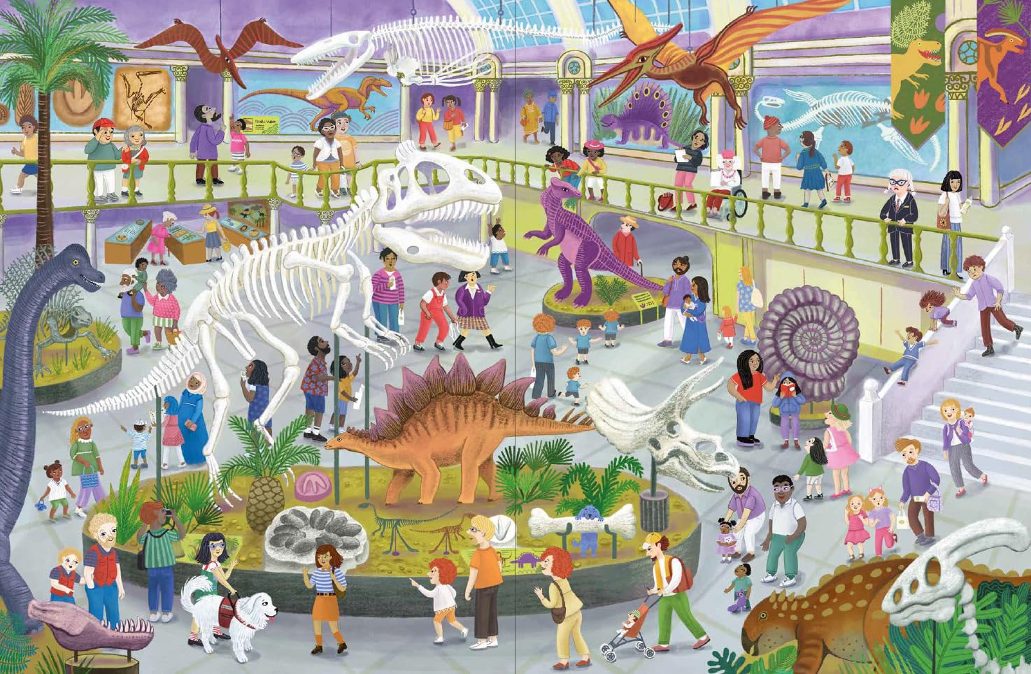 A trip to the museum becomes an exciting game of I Spy in this charming book. The museum, with its vast halls and endless variety of different exhibits, provides the perfect backdrop for a playful adventure filled with discovery. Every spread features a busy, double-page illustration of a different room packed with art, artifacts and all sorts of visitors. As children explore the Great Hall, the Dinosaur, Transportation, and Ancient Civilization exhibits, the Art Gallery and Sculpture Garden, as well as the Ocean Hall, they’re invited to search for Pepin, a mischievous dog who has wandered away from his owner, Carlo. Each room is a lively world of its own, full of activity and a recurring cast of wonderfully diverse characters. As kids search for Pepin on each page, they’ll delight in finding all the little details and humorous moments hidden throughout the scenes. This playful, interactive book encourages an engaging game of observation, keeping young readers enthralled as they learn about museums and follow Pepin’s trail—right into Carlo’s waiting arms.