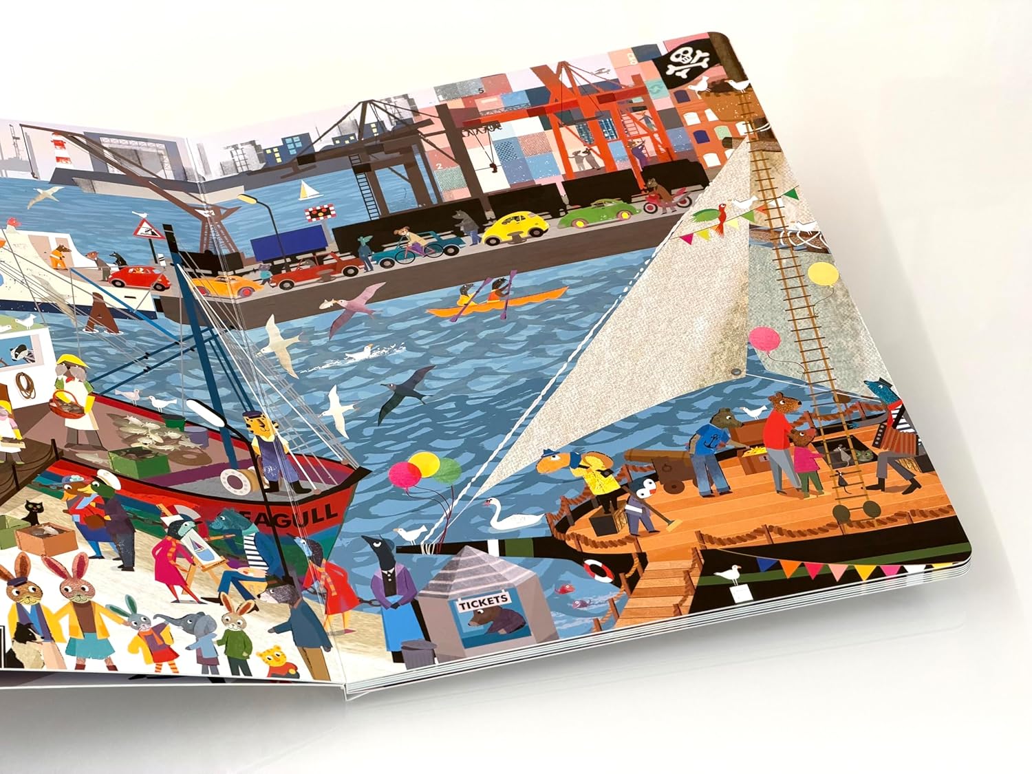 Children can follow a family as they tour the port, ride the ferry, and even visit a pirate ship. Along the way, familiar faces return—including the mischievous Bandit Badger, who’s back as a stowaway hiding in plain sight. Each detailed scene is packed with playful surprises and whimsical characters, offering countless opportunities to observe, search, and discover. Whether it’s cranes unloading cargo, seagulls swooping overhead, or curious critters peeking from behind barrels, every page invites readers to slow down and explore. With its detailed artwork, interactive format, and irresistible cast of characters, this is a book children will return to again and again—always spotting something new. Perfect for quiet moments or shared reading, this engaging book encourages close looking, storytelling, and curiosity about the world. Fans of the series will delight in the rich illustrations and gentle humor, while newcomers will be instantly charmed by Fluffyville’s playful spirit. A joyful celebration of life by the water, full of warmth, whimsy, and discovery.