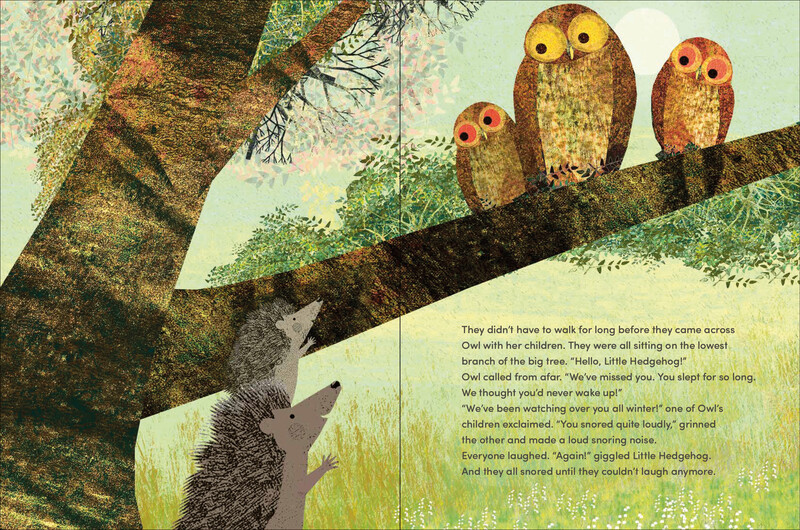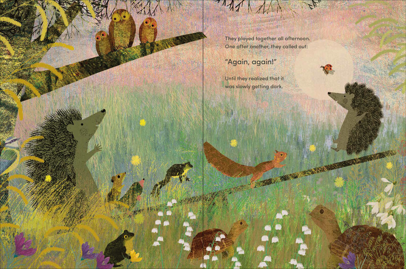 It’s finally spring, and Big Hedgehog and Little Hedgehog are ready to explore the world after having slept all winter. Everything looks the same, but also new. Over the course of a lovely day they run into old friends and take part in fun activities—swinging, teasing, jumping around—and each time Little Hedgehog wants to do the same thing again and again.