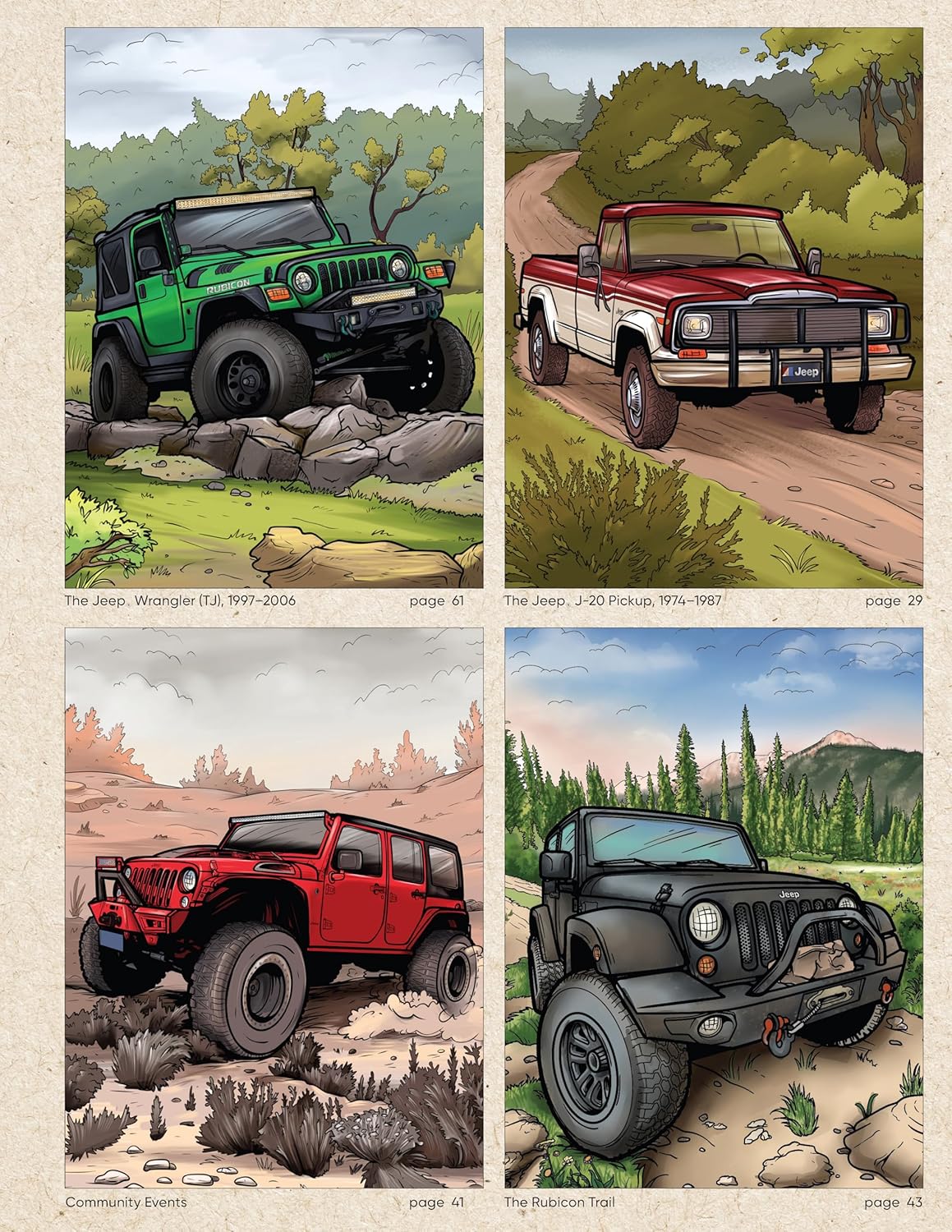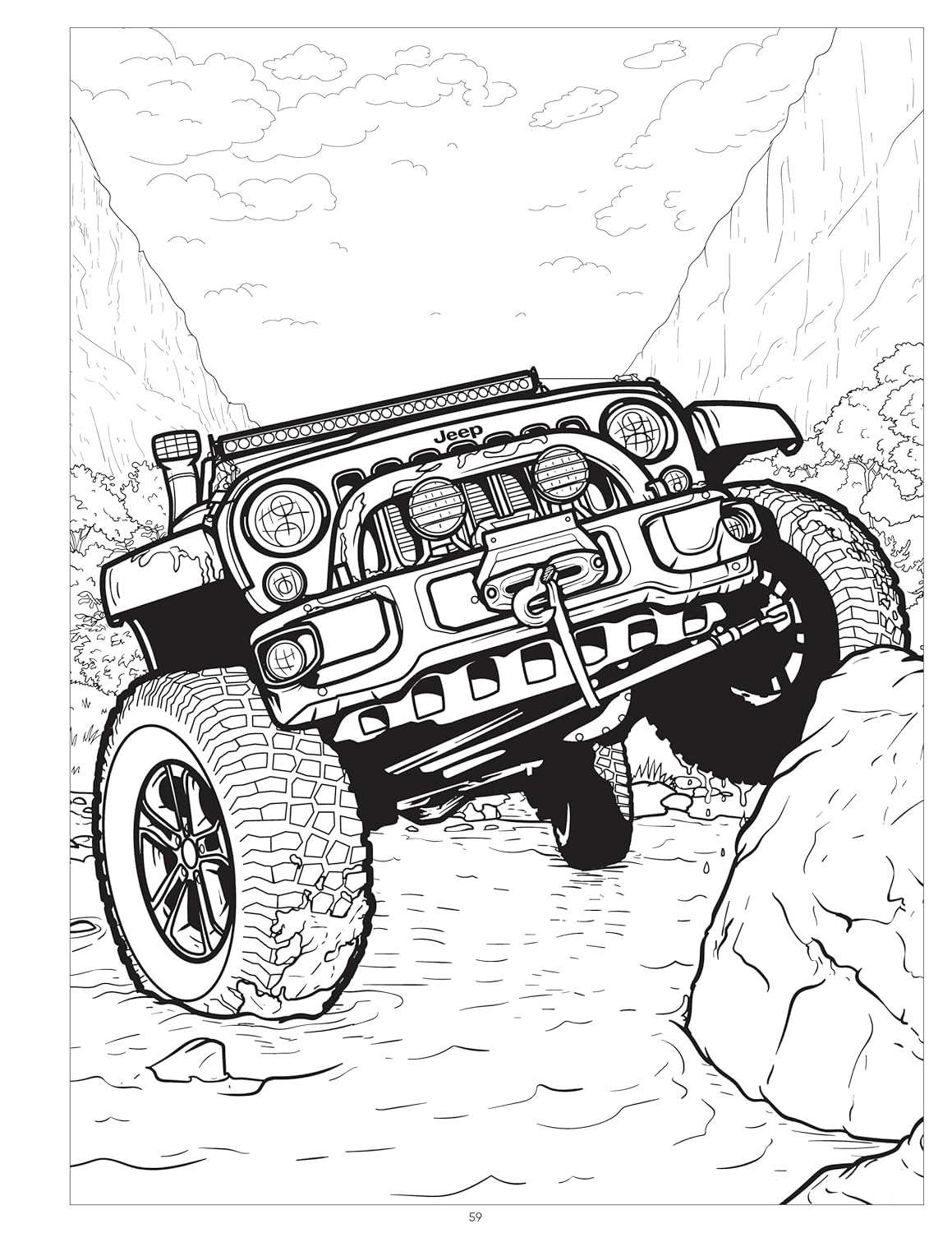 As you color, you'll learn fun facts about Jeep vehicle models, and you can even search for playful secret graphics — "Easter eggs" — that are hidden on each page! Whether you're coloring your favorite Jeep Wrangler, Jeep Grand Cherokee, or other legendary Jeep vehicle models, each page is designed to spark creativity and imagination.