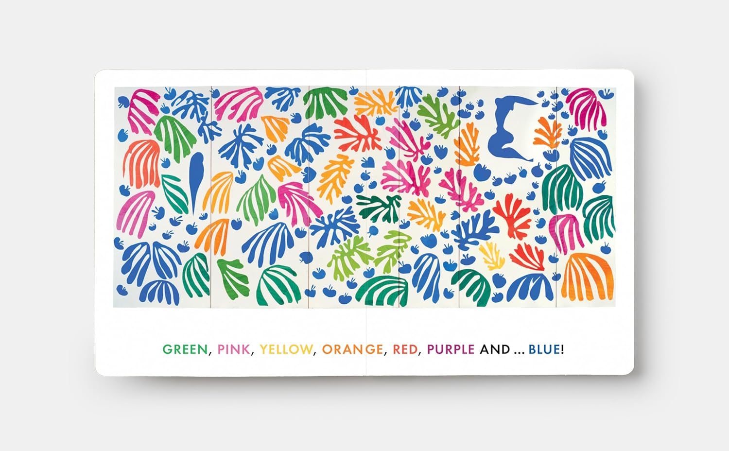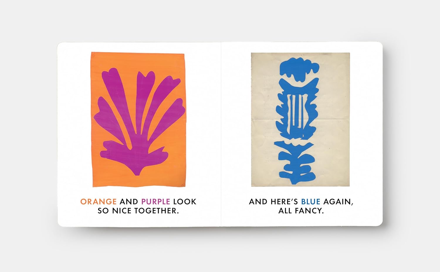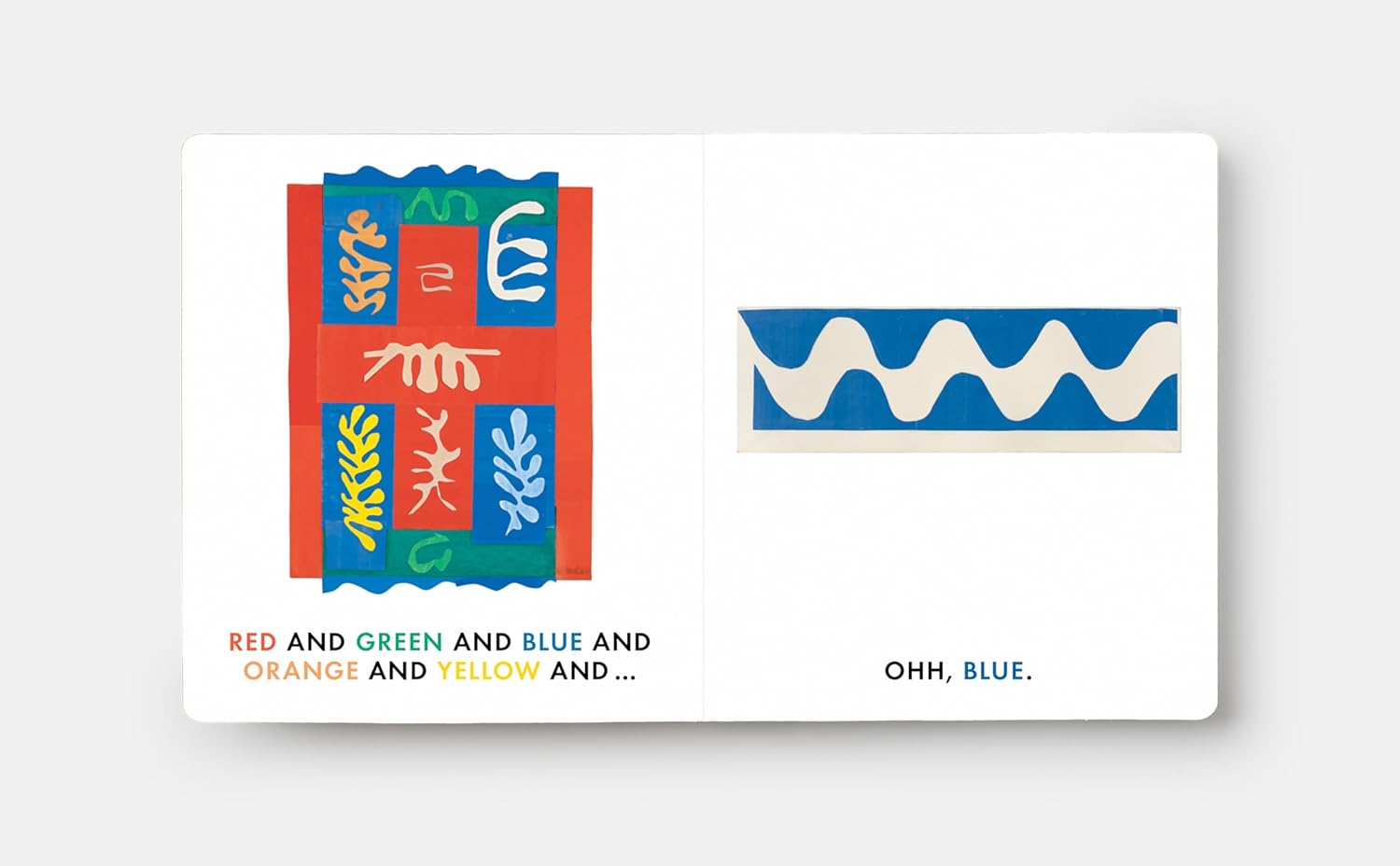 Henri Matisse’s abstract cut-outs are used to teach colours in this innovative read-aloud board book
