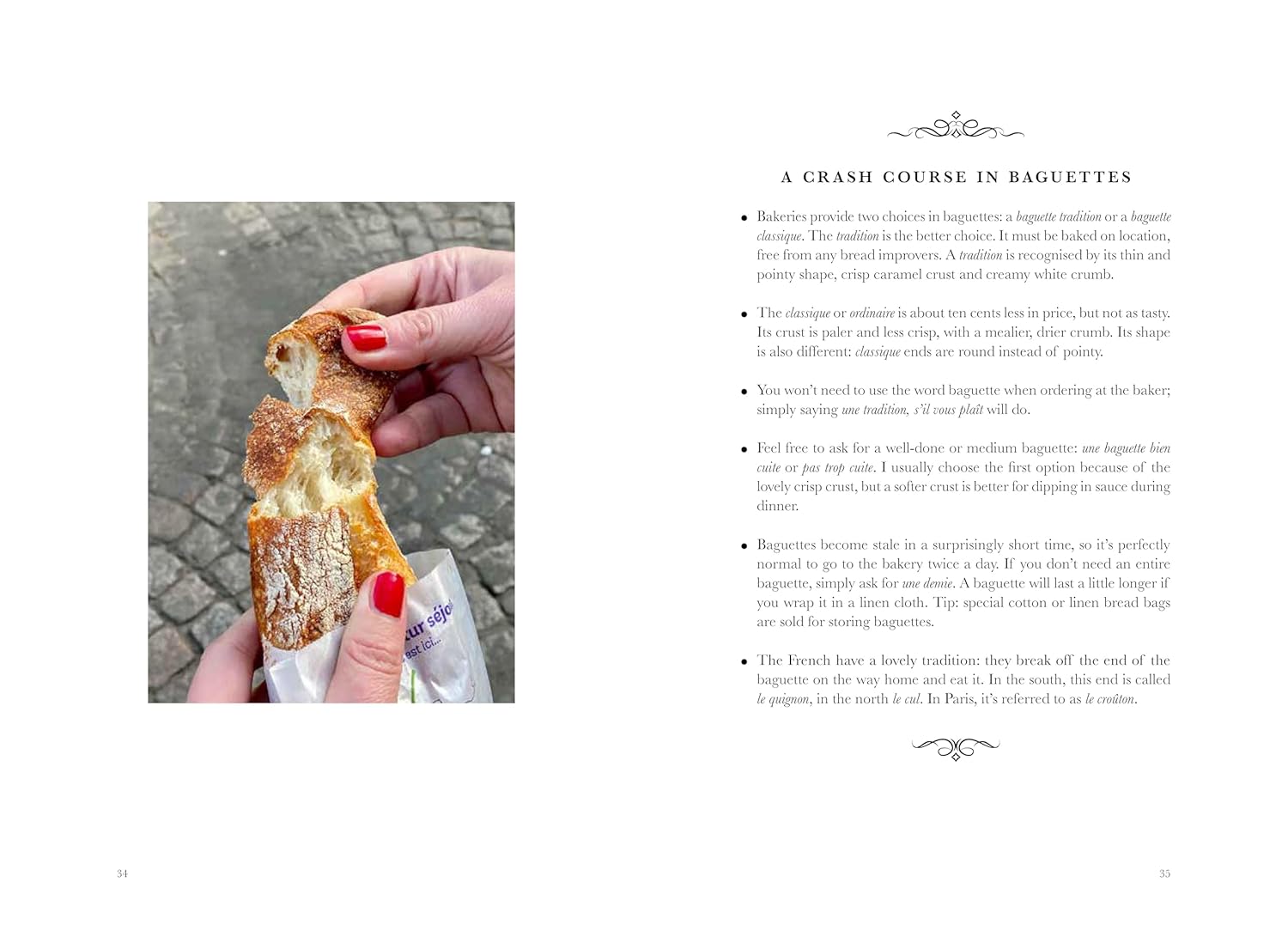 Organized around a typical “journée gourmande,” the book follows the rhythm of real Parisian meals: petit déjeuner, déjeuner, goûter, apéro, and dîner. Along the way, Grimm answers essential questions such as, “what’s the difference between a brasserie and a bistro? When do you eat macarons? What drink pairs best with a planche apéro? And how exactly do you deal with a French waiter?” Her voice is authoritative, stylish, and full of practical charm. She offers etiquette tips, expert insights, and more than 80 carefully selected addresses across all 20 arrondissements—plus a handful of classic recipes to try in your own kitchen.