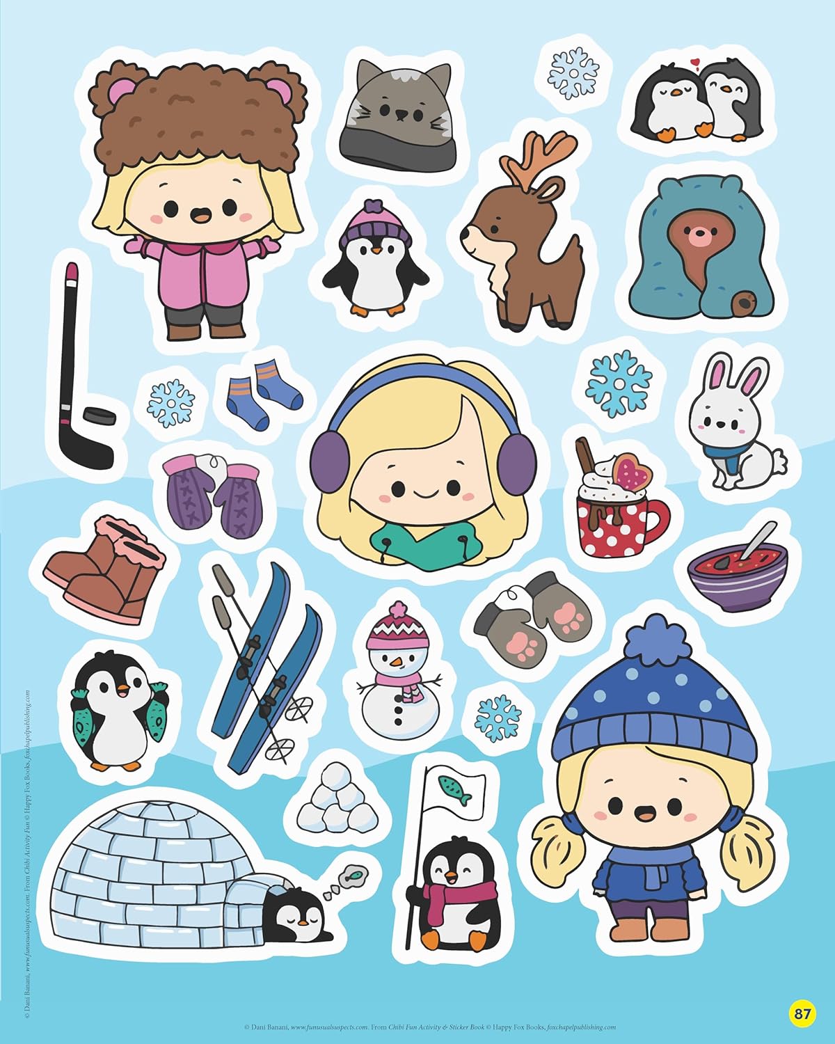 Chibi is a style of caricature modeled after Japanese anime and manga art, featuring tiny characters with large heads and adorable features. This super-cute chibi children's activity book is divided into 4 seasonal sections with seasonally themed coloring pages and stickers in each.