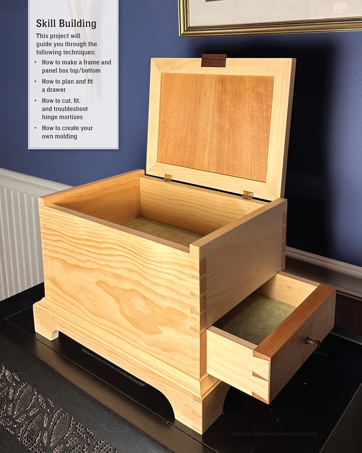 Author and experienced teacher Albert Kleine is a longtime woodworker who instructs woodworking for beginners. He presents projects here by featuring the more beginner and intermediate-friendly first, such as one made with a simple butt joint, then progresses through more advanced endeavors such as a desk tray with a marquetry bottom.