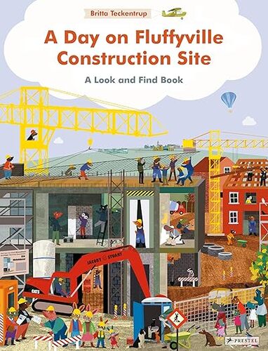 The latest look and find book from the always-engaging Britta Teckentrup invites young readers to explore the bustling world of a construction site from dawn until dusk. Perfect for curious minds aged 2-5, this latest Fluffyville adventure celebrates the variety of artistry, craftsmanship, and teamwork that goes into building something new. Children are naturally drawn to the noise, movement, and sheer size of construction equipment. This book brings that excitement to life in a series of wonderfully detailed pages depicting the different stages of building a new daycare center and residence for the families of Fluffyville. . From big trucks and diggers in the early morning to clearing up and clocking off as the sun sets, the book shows the progression of work throughout the day. . Concrete is poured, roof trusses are nailed, walls are plastered, bricks are laid. . The citizens of Fluffyville pop up all over the place, planning, working, measuring, playing, and occasionally making mischief. Kids will love spotting busy construction workers, towering cranes, and powerful machines, all while searching for hidden objects and learning fun facts.