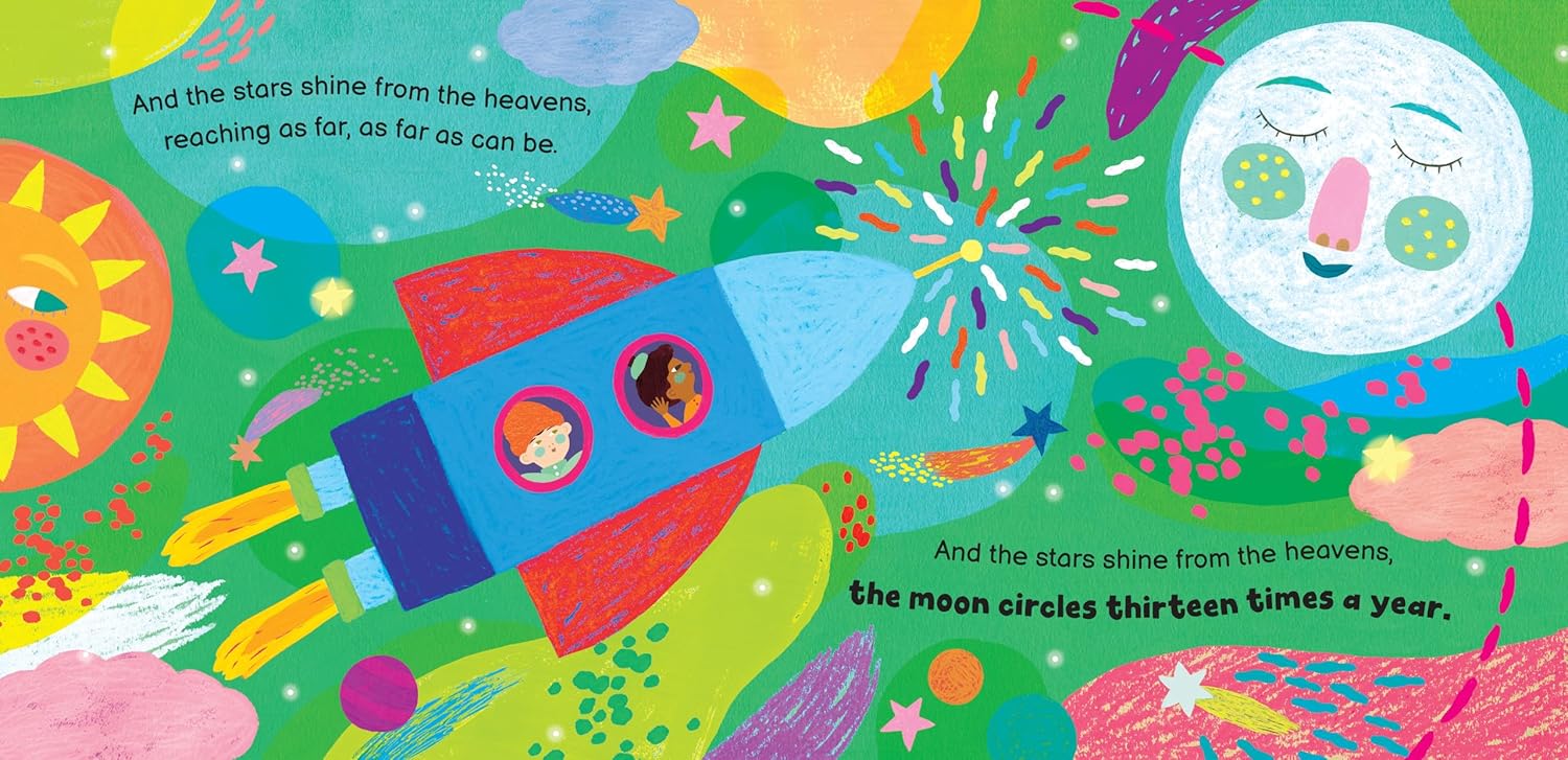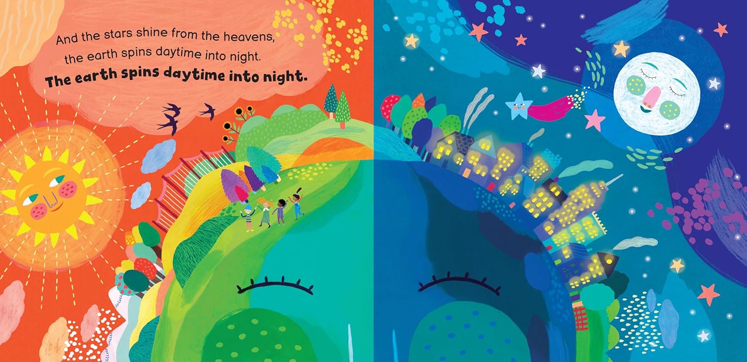 What creates the seasons? How does day turn to night? Learn how the sun and moon create earth's seasonal and daily cycles in this uplifting, musical exploration of the beautiful planet we call home. Written and sung by Susan Reed (Over in the Meadow and Up, Up, Up) and illustrated by Mariona Cabassa (Whatever Comes Tomorrow, Barefoot Books Water, and A Gift for Amma), the calming music and vibrant illustrations help children understand our place in the universe.