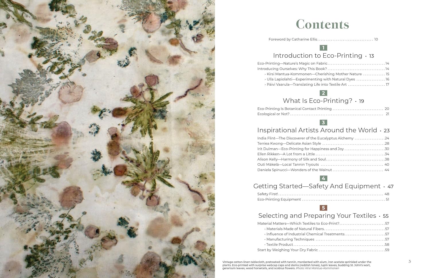 • In-depth profiles offer personal stories and suggestions from seven of the world’s leading eco-print fabric artists, together with their amazing prints for inspiration. The first comprehensive resource on fabric eco-printing, from basics through current scientific breakthroughs, by three experts at the forefront of sustainable textile techniques.