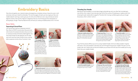 Get ready to stitch the cutest projects you’ve ever seen with this easy guide to making 16 cute hoops—no pricey materials or prior experience needed! First, learn fundamentals such as prepping a hoop, splitting floss, and threading a needle; then, practice basic stitches on a handy sampler; and, finally, carry your newfound skills through the seasons with 16 adorable step-by-step projects complete with materials lists, photography, and easy-to-use perforated templates at 100% size. From a happy spaceship, flower garden, and mermaid to a friendly s’more and a holiday gingerbread house, these projects will give you something fun to stitch no matter the season. Beginners will welcome the chance to create adorable, satisfying projects while growing their skills. Plus, readers will get tips on adapting the projects for child stitchers.