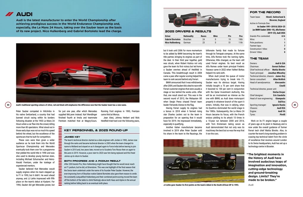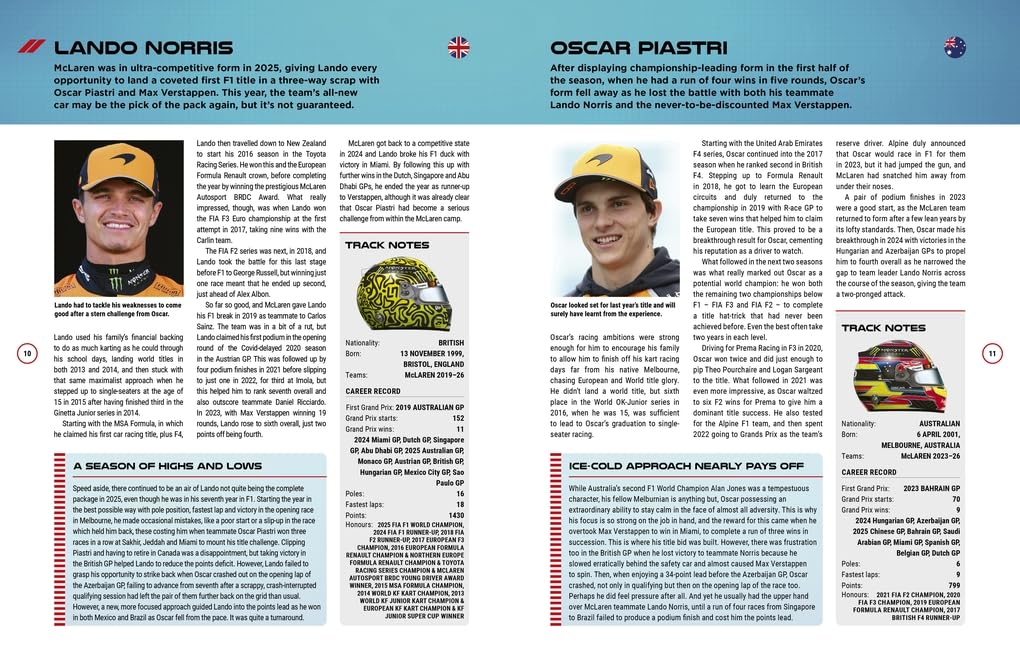 This is the definitive guide to Formula 1 in 2026 - a complete examination of all the teams, drivers and tracks featured in the packed Grand Prix calendar. Also including a full review of the 2025 season and a breakdown of the new rules and regulations for 2026, this indispensable guidebook features a full breakdown of last season's drivers' and constructors' world championship results - as well as a fill-in chart for 2026, so each book becomes your own personalised guide to the year's action.