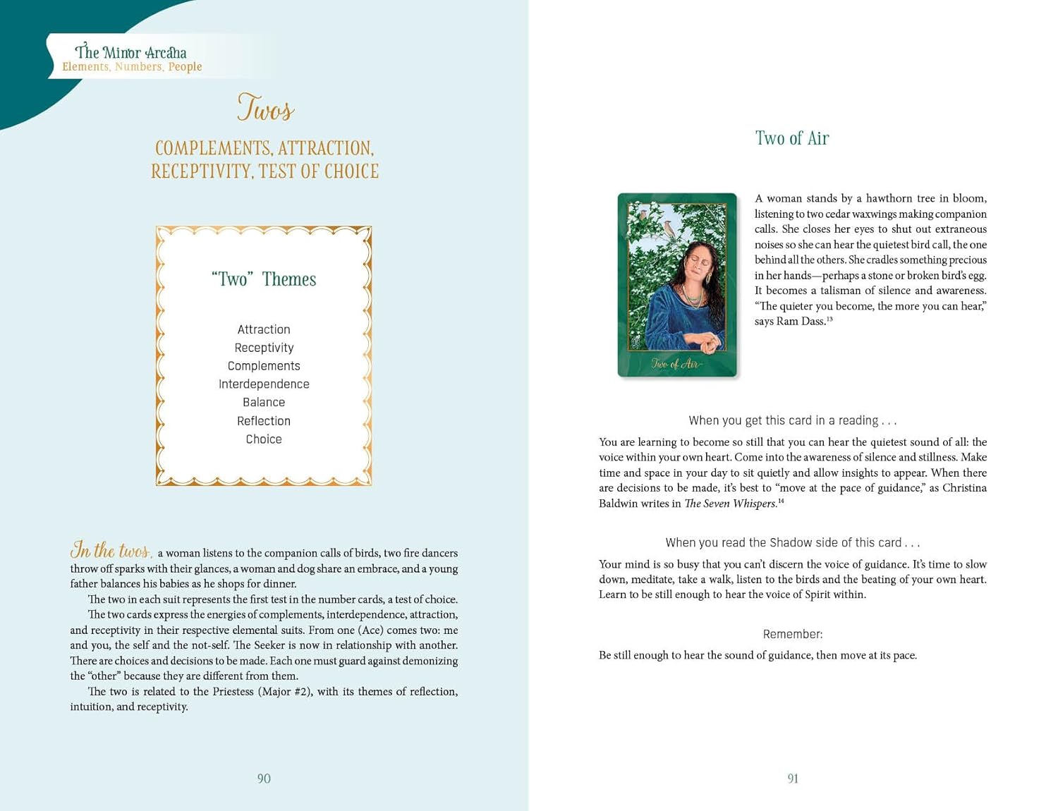 The Major Arcana cards represent 22 soul lessons and archetypes that grew out of the religious and mystical worldview of Renaissance Europe, revisioned for modern life. The Minors illustrate elements, numbers, and people. Interpretations include uprights and reverse divinatory meanings, themes, exercises, symbolism, journal questions, wisdom statements, and thirteen spreads, including five new ones.