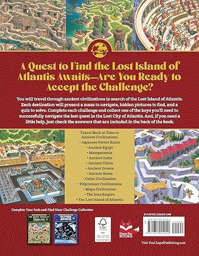 Inside this activity book for kids ages 8 and up, 12 highly detailed, beautifully illustrated, and visually accurate maze designs are filled with quizzes, riddles, and hidden objects to solve the book's overall quest: Finding the Lost City of Atlantis.
