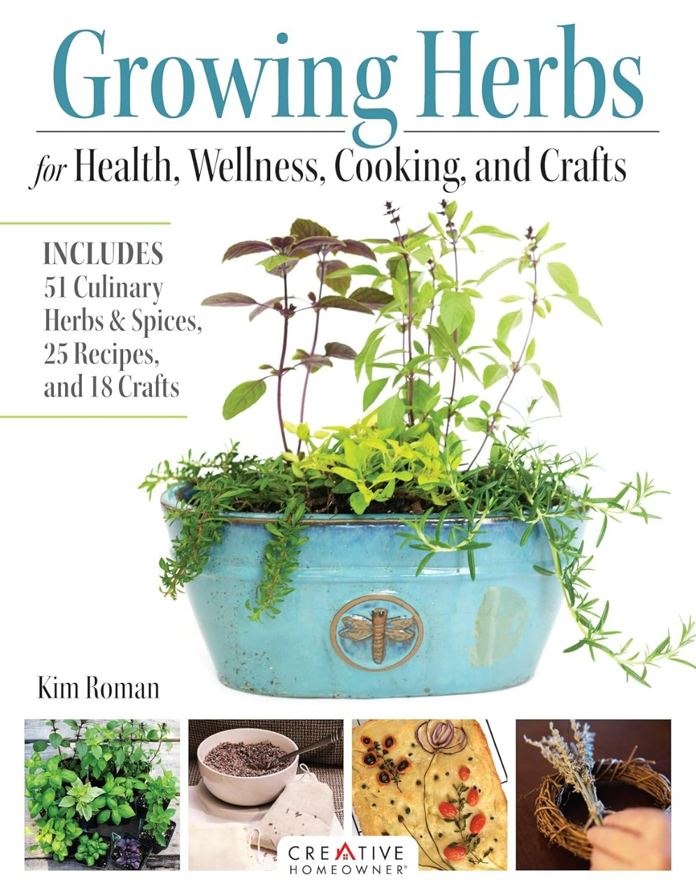 Learn everything you need to know to start your own culinary herb garden! Comprehensive guide on how to get started growing herbs and spices, whether indoors or outdoors 51 useful herbs are featured in plant profiles, including echinacea, St. John's Wort, turmeric, elderberry, ginger, chamomile, Tulsi (holy basil), anise, hyssop, and many more Clear instructions for seeding and transplanting, soil, light, warmth, fertilizer, pests and diseases, protecting your herbs, harvesting, and storing seeds Helpful growing charts including sun exposure, how much to water, soil type, plant spacing, and planting depth Use your herbs in cooking, crafting, beauty and skin care, wellness, to help household pets, or even grow herbs as a side business 25 recipes include marinades, salad vinaigrettes, infused oils, cocktails, mocktails, bread, teas, and more Medicinal herbs section written by herbalist Michelle Guerrero Denison whose website "The Twig and Feather" discusses all things herbal Get all the indoor and outdoor gardening tips and advice you need to start growing herbs today! From soil preparation, lighting, how often to water, pests and disease prevention, important things to know when planting indoors verses outdoors, and more, expert gardener and author Kim Roman shares invaluable tips inside this book to help you produce high-yield quality herbs at home. Kim also shares quick reference charts and plant profiles for 51 of today's most popular herbs, in addition to a few of her favorite recipes where herbs are the star ingredient, including marinades, salad vinaigrettes, infused oils, delicious cocktails or mocktails, herbed and plain focaccia bread, teas, and more! You'll also learn how you can enhance your crafting projects by adding herbs! Discover the wide variety of uses for all the herbs you can grow right at home, with Growing Herbs for Health, Wellness, Cooking, and Crafts!