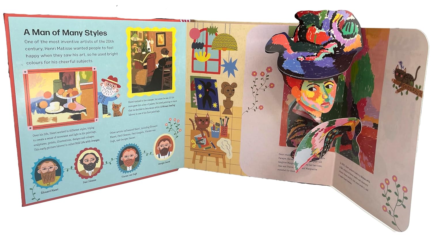 Matisse was one of the most original artists of the 20th century. He became famous for his use of colour and early "Wild Beast' paintings. In later life, when he was too ill to stand at an easel, he began "drawing with scissors," creating iconic cut-out compositions with coloured paper. See his works come to life in five dazzling popups and read about his love of cats and life on the French Riviera.