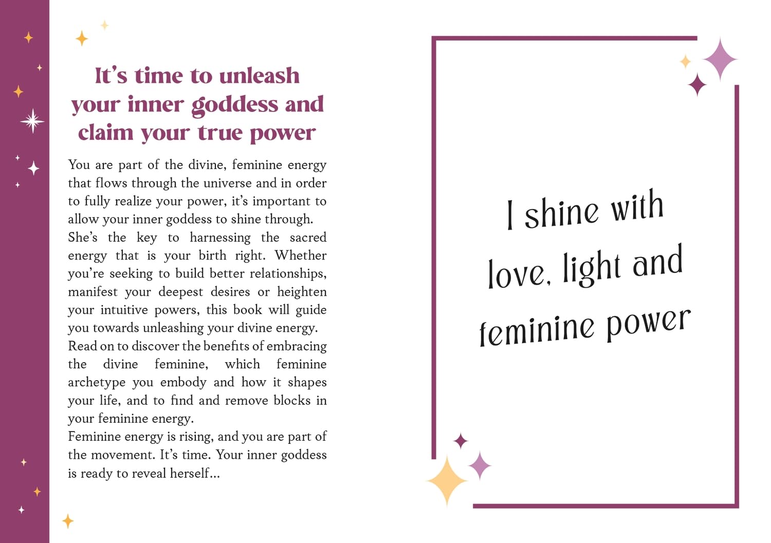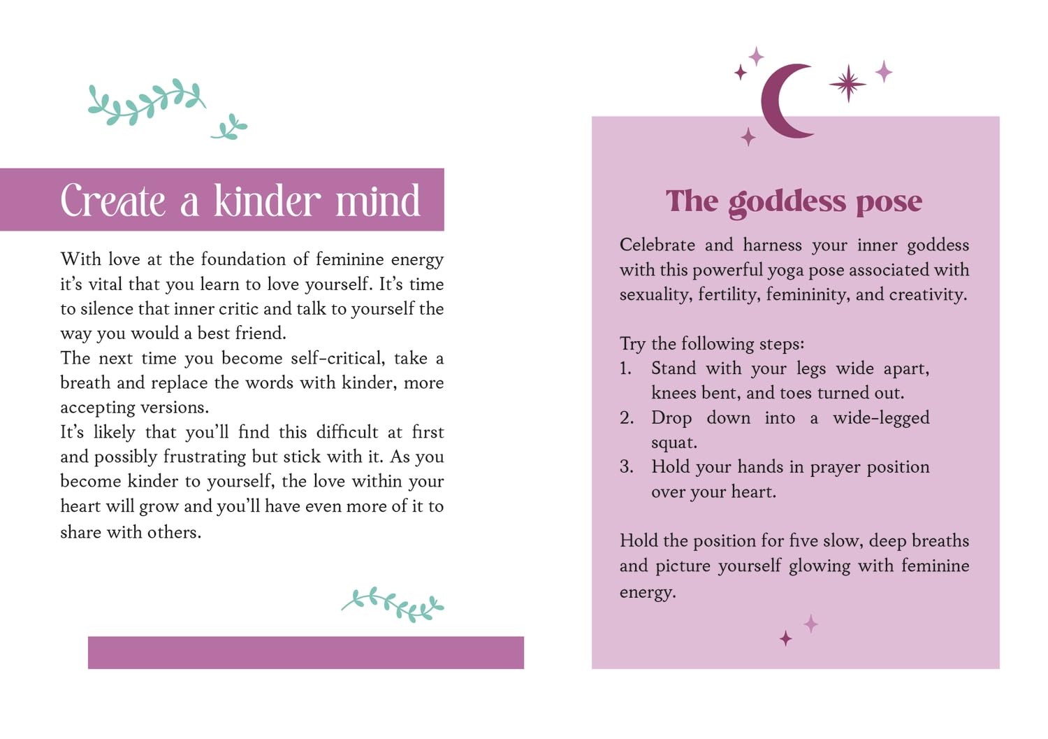 As well as affirmations, rituals for self-love and tips on how to awaken and channel your feminine energy, within this book you will also discover: