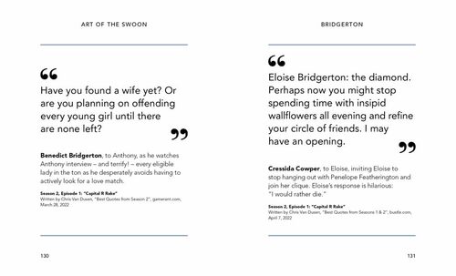 Prepare to be thoroughly enchanted - and perhaps, ever so slightly scandalized - by this little book, crafted to indulge your every curiosity about the ton's most illustrious family. Step beyond the glittering chandeliers and velvet-clad ballrooms to uncover whispered secrets, unforgettable quotes, and fascinating truths that bring our beloved Bridgertons - and those who dare cross their path - to life.