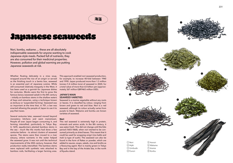 Discover the culinary life of Japan by travelling through Tokyo, Kansai, Kyushu, Hokkaido, and Okinawa—Japan’s emblematic geographic regions which each possess a unique culinary identity. Each area is presented in its own chapter, peppered with articles and features that cover subjects connected with Japanese cuisine and including recipes that reflect the regions’ distinct flavors. The eye-catching book, produced in the Japanese style, on uncoated fine art paper with a cardboard cover and a paper dustjacket, is brimming with photographs and illustrations, and features an abundance of information on a variety of topics— from the symbolism of bento boxes; Osaka’s street food marvels; Kyoto’s Nishiki Market; a celebration of Japanese sweets; a deep dive into dashi; and an introduction to the Ainu people. It includes sixty recipes which adapt Japanese home cooking to Western kitchens, using ingredients readily available in Europe and the United States. Perfect for home chefs interested in Japanese cooking, as well as anyone curious about Japanese culture, this culinary travel diary celebrates the intricate story of Japan’s cuisine and how it is interwoven with the nation’s geography, history, and its respect for nature.