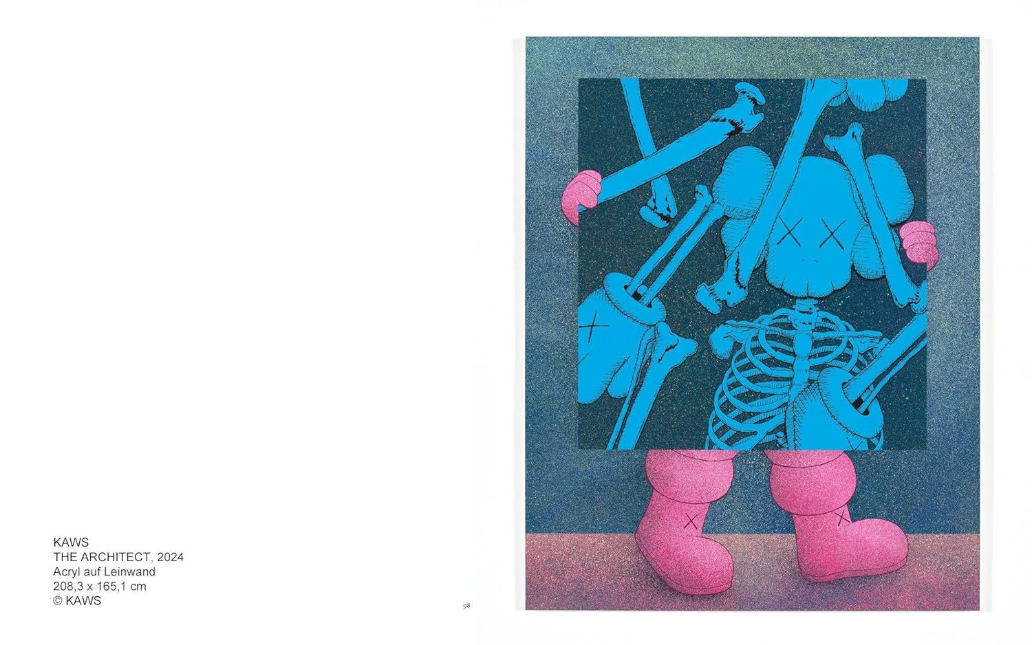 KAWS. Art & Comics explores the interplay between comics, comic strips, cartoons, and fine art. It places the American artist KAWS in dialog with selected contemporary stances, focusing on the artistic autonomy of his characters—figures that unite characteristics of street, pop, commercial, and public art. Comics are characterized by a universal language and exist in many cultures as an accessible way of telling stories graphically, in words and images. Jean-Michel Basquiat and Ad Reinhardt were fine artists who created comics in a near-classic vein. Even before the advent of photography and (animated) films, caricature, satire, and frame-by-frame narration offered a powerful way to convey stories across national, generational, and social boundaries.