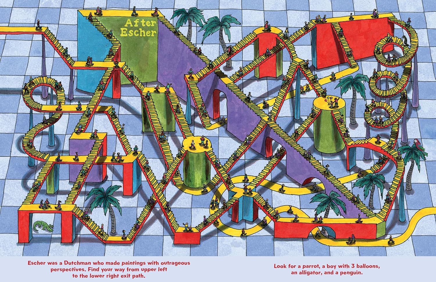 An interactive children's activity book featuring 10 interconnected mazes and seek-n-find games designed to enhance critical thinking and spatial skills.