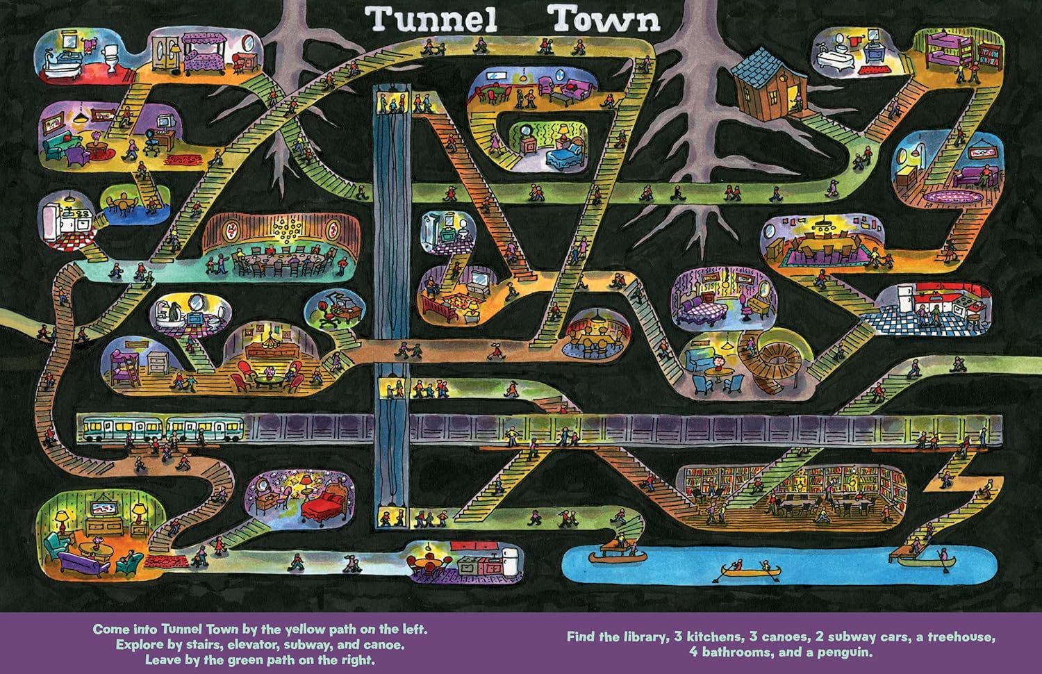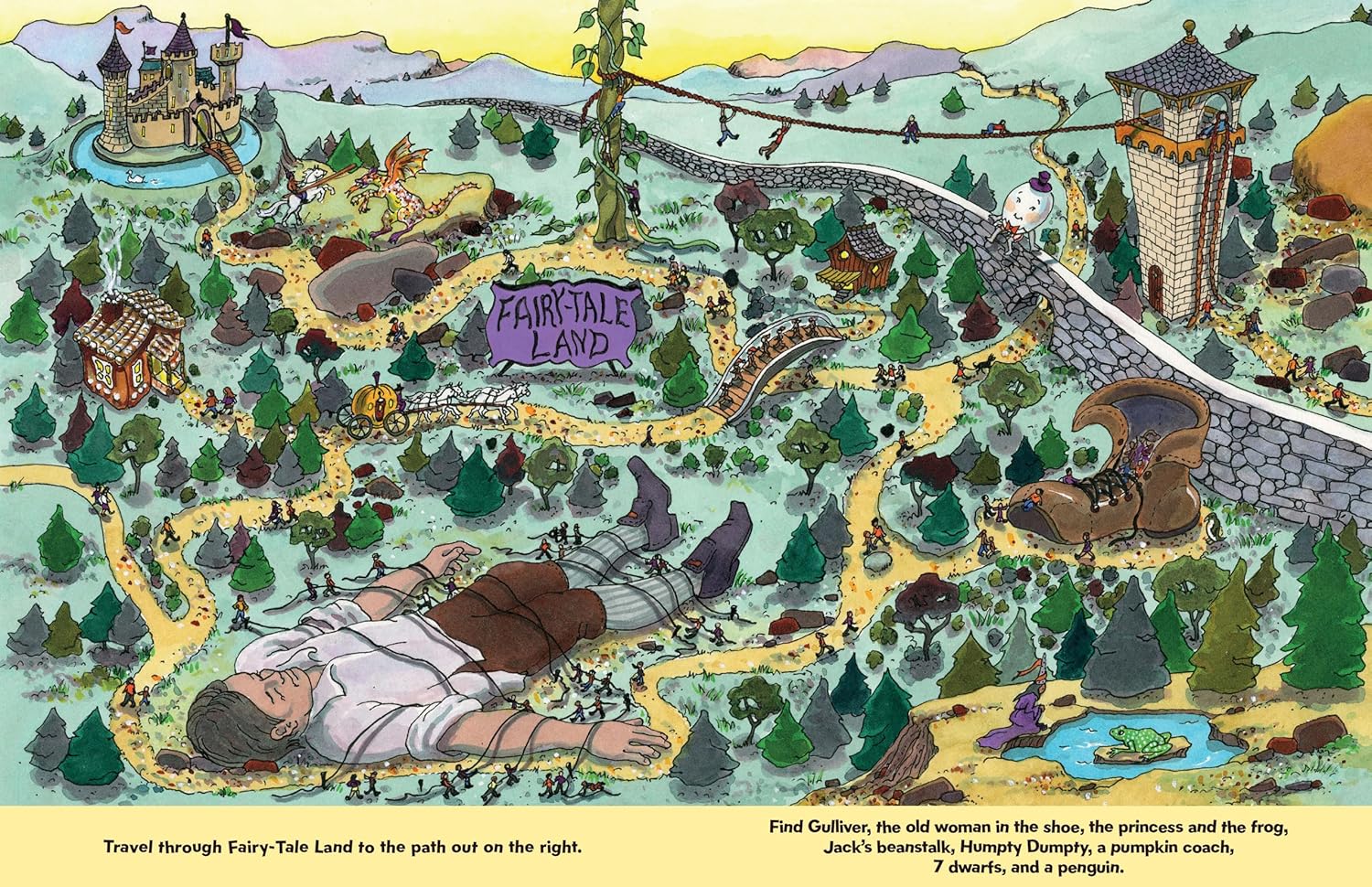 Seek-n-find challenges with hidden items including penguins, dragons, and more.