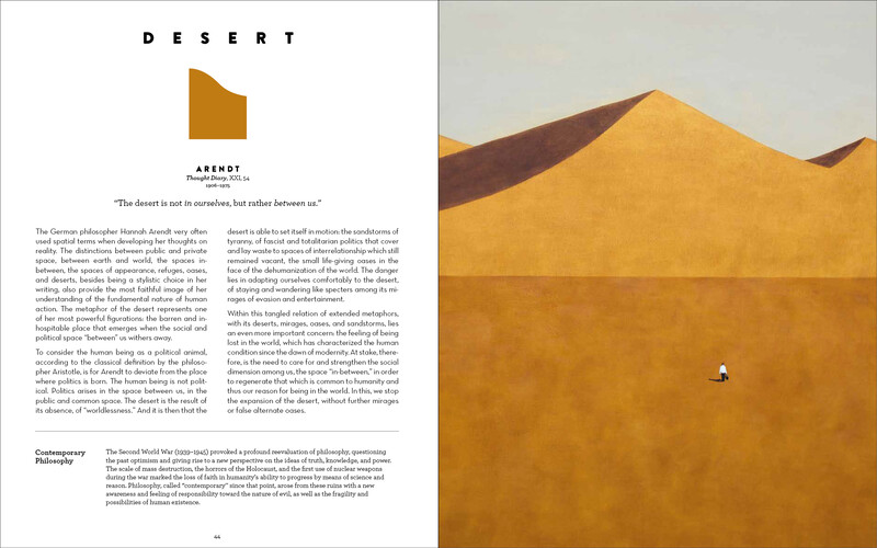 The word metaphor comes to us from Ancient Greek, in which it meant “transfer.” In this book, philosophical concepts from throughout history and from all over the world, are transferred into images, which help us to understand the world that surrounds us using memorable colors and shapes. Designed for those curious about philosophy and its intricacies, this elegant and accessible book explores twenty-four metaphors, that are foundational to our understanding of the human experience and the mysteries of existence. Each double-page spread explores a specific metaphor such as the mirror, light, an iceberg, or the matrix. One side of the spread offers information about the philosopher; an original quote; the source text; a symbol for each metaphor; and contextual background. The opposite page features a gorgeous artwork that encapsulates the overarching significance of the metaphor it illustrates. From Heraclitus’ “river,” the first metaphor of western philosophy, to the “liquid metaphor” a concept introduced by the sociologist Zygmunt Bauman to describe the characteristics of contemporary society, this fascinating guide is a clear and memorable introduction to world philosophy. It’s the perfect book for a budding philosopher or anyone interested in in exploring profound ideas through art.