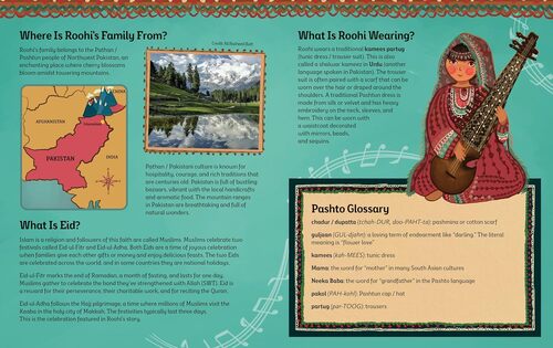 Roohi's grandfather is an expert rabab teacher. When he falls ill, she must find the courage to perform at the Eid concert without his help. In their small village in Pakistan, Roohi's grandfather teaches her to play the rabab, the traditional stringed instrument of the Pashtun people. He tells her, To play the music of the mountains, you must feel the rhythm, feel the beat of your people. But when he falls ill, she must find the courage to perform at her school's Eid concert without his help. Includes endnotes about Pakistani music, Pashtun culture, and Eid. AGES: 6 to 8 AUITHOR: Sabrina Shah is from the heartland of England, UK. She worked in publishing for years before pursuing her dream of writing fun and lyrical picture books, spooky middle-grade mysteries, and YA rom-coms. Sabrina currently lives with her husband and two children in Singapore. Her rainy day special is writing with a hot cup of chai and a plate of pakoras. Manal Mirza is a designer and illustrator based in Chicago, Illinois, USA. Manal creates her paintings digitally and draws inspiration from her experiences. Being a young Muslim American Pakistani woman, her illustrations highlight the different identities that she juggles day to day. Manal brings her own positive outlook to her work, aiming to empower women around the world.