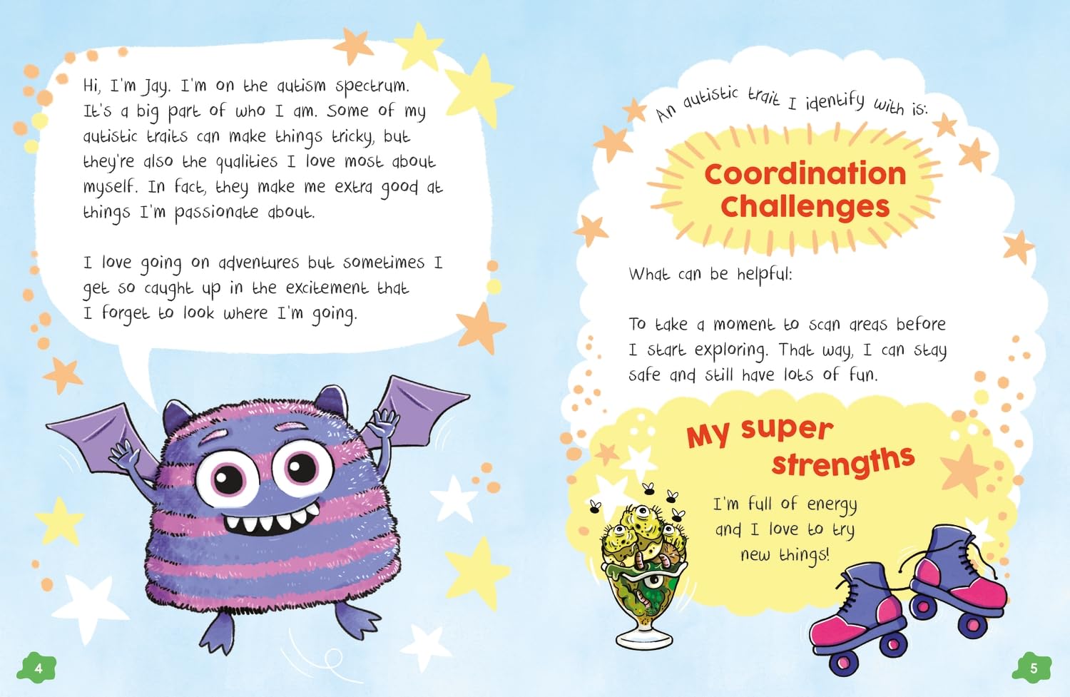 Jai and their friends are a brilliant bunch of little monsters who can't wait to meet you! They're all on the autistic spectrum, and in this book, they each share what that means for them - from things they find challenging to the amazing strengths their unique brains bring.