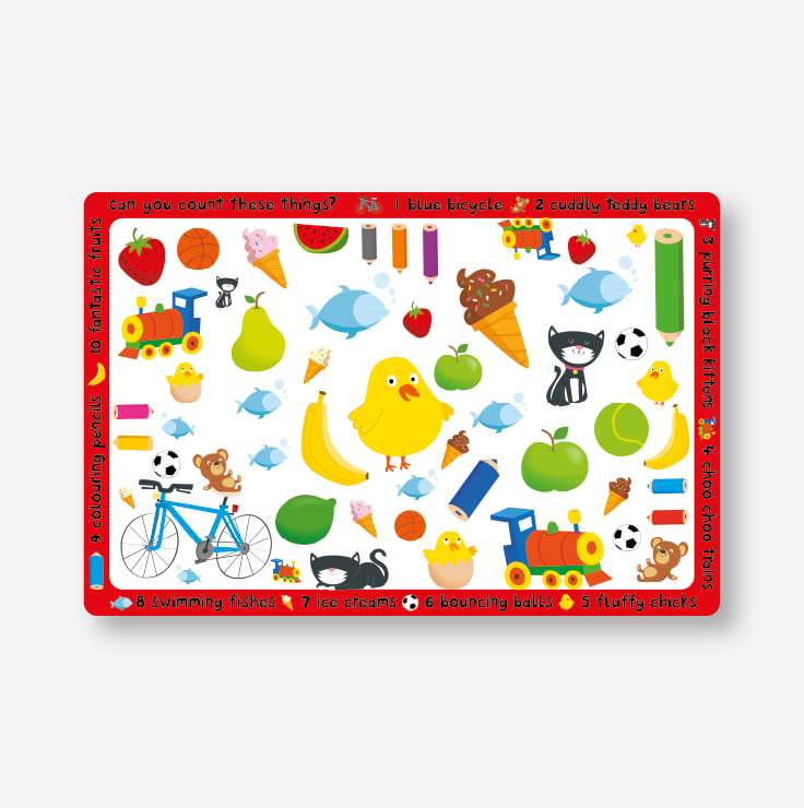 Jumbo format board book for your little one to get lost in. Packed with first words and counting challenges. Counting and spotting final spread to build numeracy understanding.