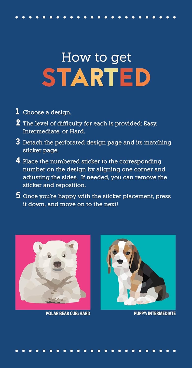 This distinctive poly-art paint-by-sticker book for kids ages 6 and older features a collection of 10 geometric designs of super-cute baby animals, from baby rabbits, baby chickens, and baby ducks to baby deer, baby horses, and baby dogs: