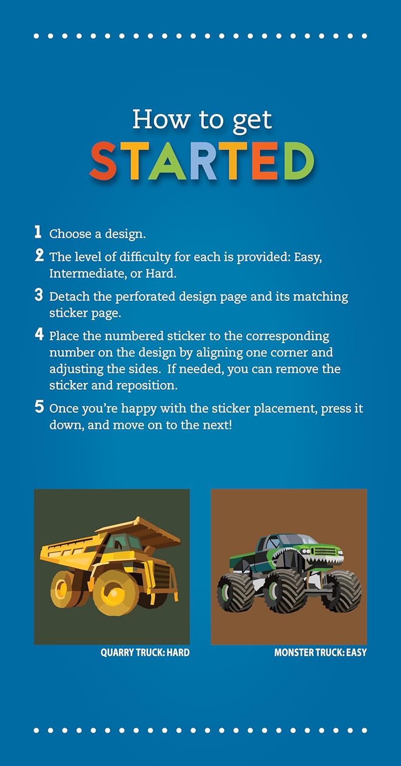 Fun facts for each truck design, so kids can read and learn as they paint with stickers