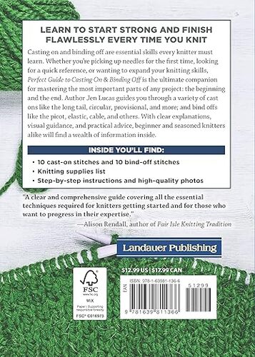 Knitting is one of America's favorite pastimes--but it never hurts to know how to start and finish! In the Ultimate Guide to Casting On and Binding Off, author Jen Lucas offers a comprehensive instruction manual for beginners who need to learn the art of casting on and binding off before they master their craft. Though it includes a wide selection of easy-to-follow, step-by-step methods with high-quality supporting details, it's a highly portable reference that can fit in your knitting bag for easy transport. It's not only for beginners, though. Lucas's tips, tricks, and advice all come from her decades of experience in the craft--including working as a pattern designer. But even if you're beginning from scratch, this book offers a handy overview of tools and materials you need to "cast on" your metaphorical stitch and fully embrace this wonderfully relaxing hobby.