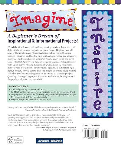 With a helpful visual glossary of terms you need to know, this book is a beginner's dream of inspirational and informational projects! Beginners of all ages will quickly master basic techniques like the half-square triangle, piecing, and fusible appliqué. Also included are extensive materials and tools lists so you understand everything you need to get started!