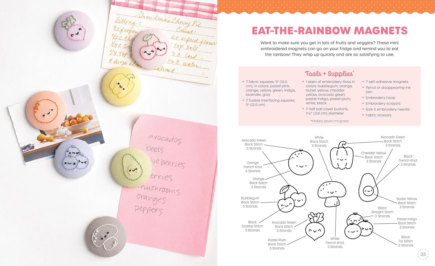 Stitch your way through an adorable pantry filled with 18 super-sweet embroidery projects and 140 mix-and-match designs!