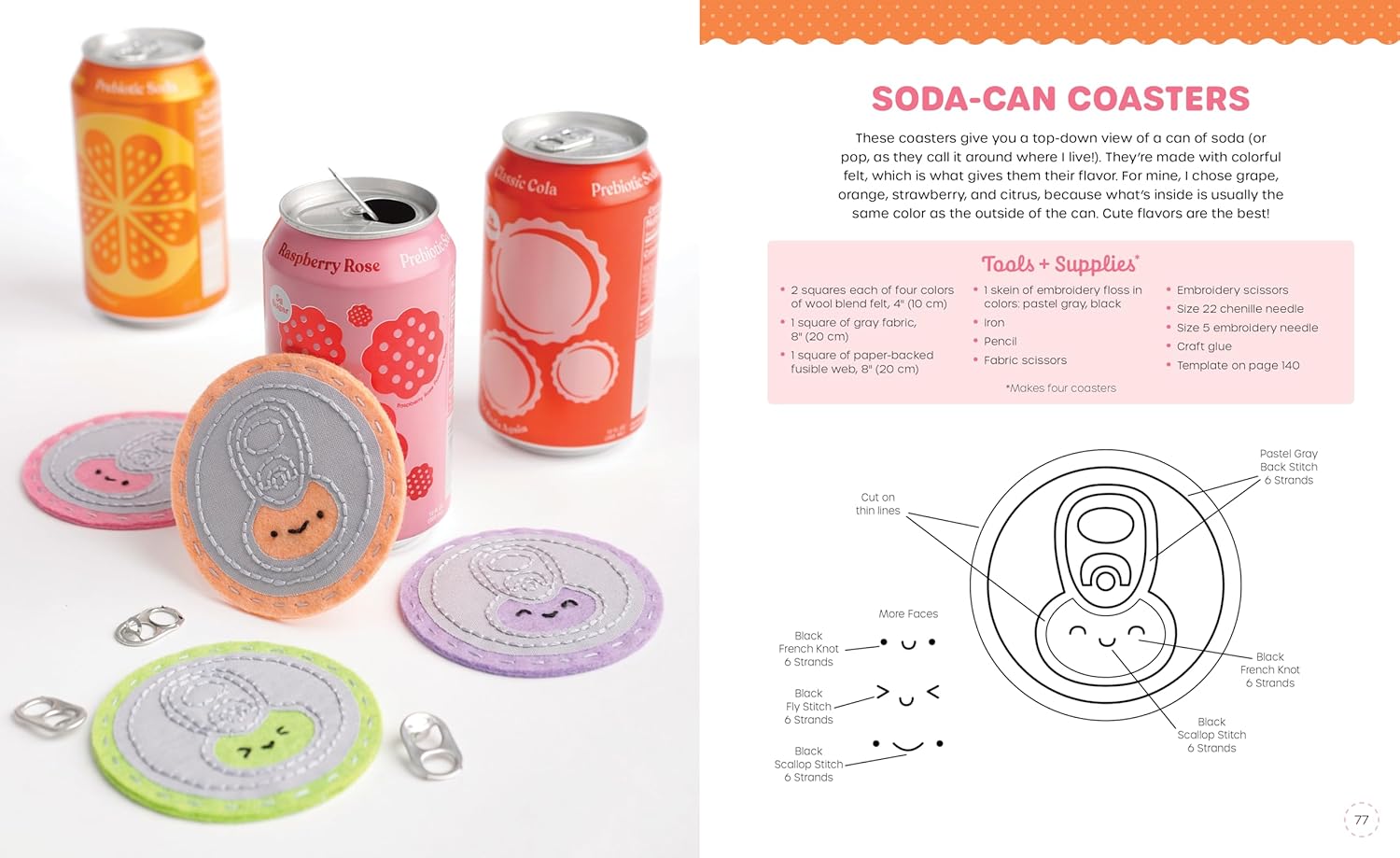 With beginner-friendly instructions, photo guides, and an exclusive download link for printing and transferring your patterns, this book makes it easy to start stitching sweet creations today. You’ll also learn how to embellish and customize your projects and get expert tips on tools and materials—everything you need to bring your favorite foods to life, one stitch at a time.