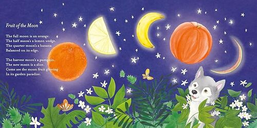 Fourteen imaginative poems provide children with an engaging way to explore the wonders of the moon. With titles including “Magic Moon,” “Ice Cream Moon,” “Fruit of the Moon,” “Artist Moon,” and “Moon Cat,” the poems encourage toddlers and young children to think of the moon in new and creative ways: as an ice cream cone, a lollipop, a piece of fruit, a lost balloon, and more.