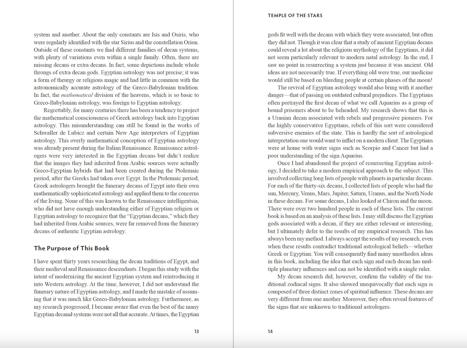 Discover the astrological meaning of the ancient Egyptian decans, their correspondence to gods and the afterlife, and how each individual’s decan placement defines their experiences. Astrologers divide each of the 12 zodiac signs into three parts, called decans. The ancient Egyptians had an independent system of decans that is now all but forgotten. This form of astrology was not oriented toward the affairs of the living but was aimed at helping the soul achieve enlightenment after death. Each of the decans was associated with a powerful Egyptian god who would protect the soul as it traveled through their particular area of the heavens. Temple of the Stars provides in-depth explanations for each decan, including its symbol, associated god, and well-known figures born under the same placement, and it explores how that decan defines the realities and spiritual problems of the modern individual. Through a combination of empirical and intuitive methods, this book arrives at penetrating new interpretations both of the decans and the astrological signs.|Discover the astrological meaning of the ancient Egyptian decans, their correspondence to gods and the afterlife, and how each individual’s decan placement defines their experiences.|Embark on a celestial odyssey with Martin Goldsmith's latest book, unveiling Egypt's secret astrological treasures, the decans. Readers will dive deep into the mystical realm of these 36 cosmic subdivisions, forgotten by modern astrology but revered by ancient Egyptians. Goldsmith, a dedicated astrological researcher, resurrects the lost tradition of Egyptian decans, providing a unique perspective that extends beyond mortal existence. This book delves into the intricate connections between each decan and a powerful Egyptian deity, granting divine protection and profound insights to navigate the celestial landscape. This comprehensive guide seamlessly blends empirical analysis and intuitive methods, offering fresh insights into decans and astrological signs. Readers will explore how each decan shapes the challenges of modern life, providing a road map to self-discovery. Uncover the ancient wisdom that bridges the past to our present. Readers won't want to miss the opportunity to enrich their understanding of astrology and embrace a transformative journey into the heart of Egyptian mysticism. Unlock the secrets that connect us to the cosmos!