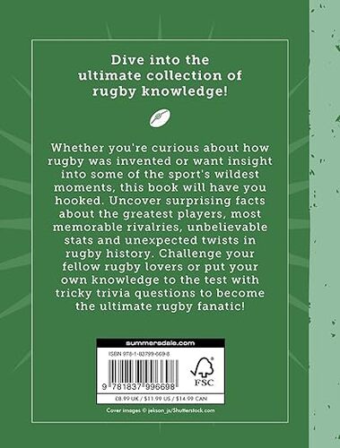 Whether you're curious about how rugby was invented or want insight into some of the sport's wildest moments, this book will have you hooked. Uncover surprising facts about the game's greatest players, memorable rivalries, unbelievable stats and unexpected twists in rugby history. Challenge your fellow rugby lovers or put your own knowledge to the test with tricky trivia questions to become the ultimate rugby fanatic!