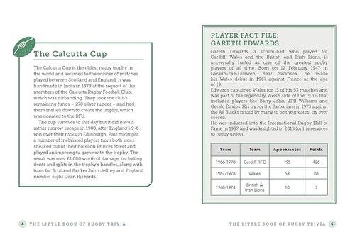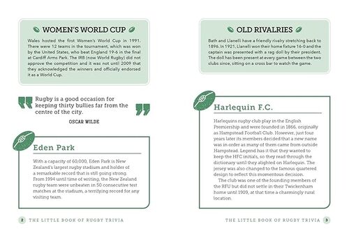 Dive into the ultimate collection of rugby knowledge with The Little Book of Rugby Trivia! From the origins of the game to the secrets of the locker room, this little book contains everything you need to become the most knowledgeable fan in the room. Discover key moments from iconic matches, learn about the legends who have shaped the game and enjoy behind-the-scenes stories that offer a glimpse into the world beyond the pitch.