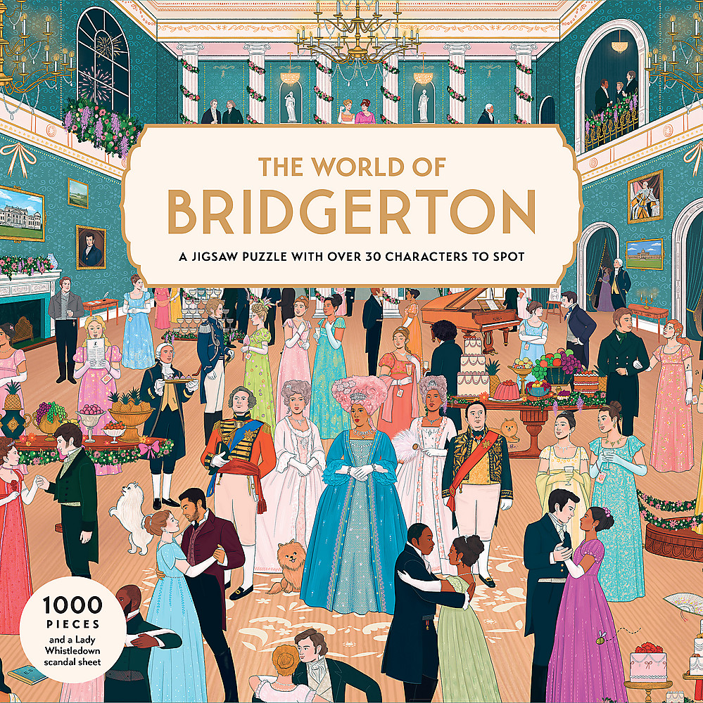 A 1000-PIECE JIGSAW PUZZLE WITH OVER 30 CHARACTERS TO SPOT Lady Danbury is hosting a sparkling soiree to begin the year's social season, and you're invited to piece together all the splendour, suitors and scandal. All the ton's most notable names are in attendance: spot the Bridgerton family, the Duke and Duchess, the Sharmas, the Featheringtons and more as you complete this beautifully detailed jigsaw puzzle inspired by Shondaland's hit series Bridgerton on Netflix. 1000-PIECE PUZZLE: Piece together the world of Bridgerton in this official jigsaw puzzle published in collaboration with Shondaland and Netflix. The perfect challenge for fans of the show - or anyone who loves a good jigsaw CAST OF CHARACTERS from the first two series: relive the highlights of the show as you build the puzzle INCLUDES A PULL-OUT POSTER featuring a scandal sheet from Lady Whistledown