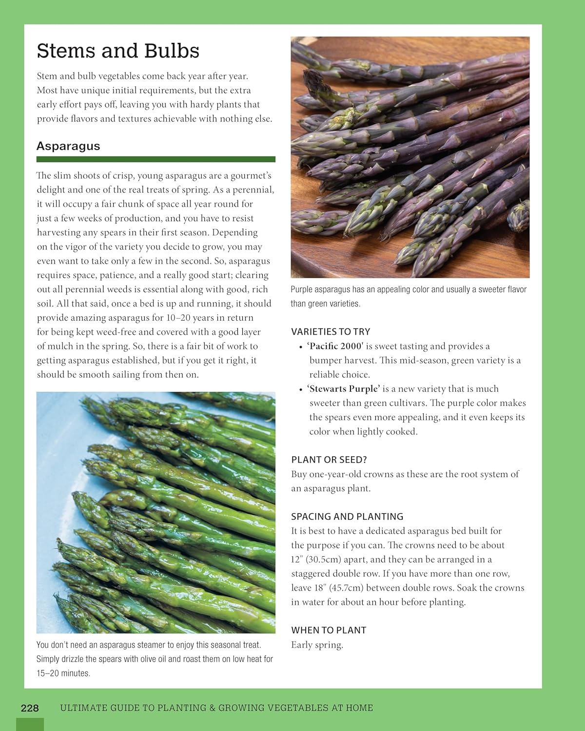 Over 70 common garden vegetables and herbs are profiled, including arugula, new potatoes, tomatoes, scallions, snap peas, bok choy, figs, radicchio, artichokes, sage, sorrel, and more