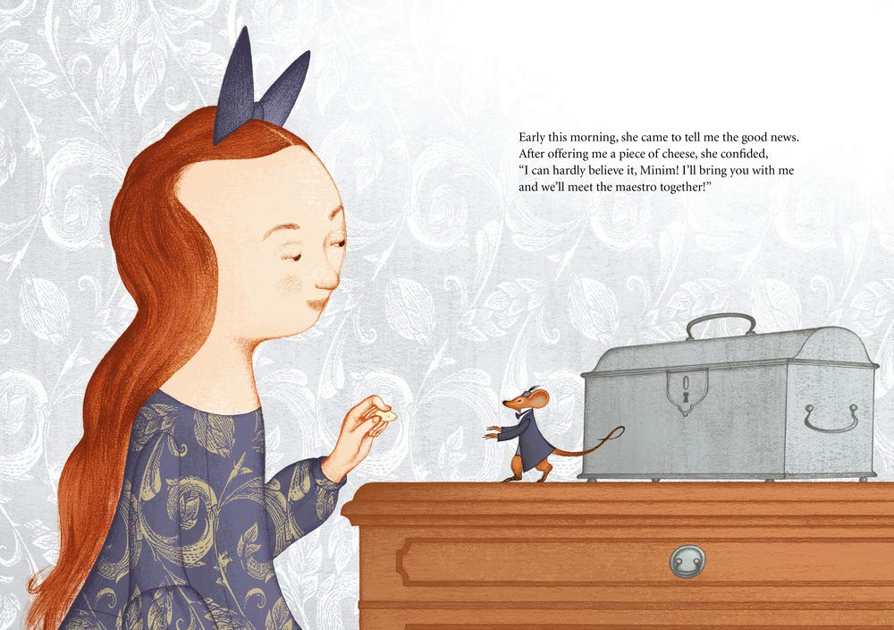 Travel through time following a charming little mouse called Minim who loves cheese and music. On this occasion, he finds himself bouncing around in Emily’s skirt pocket as she joyfully skips down the stairs to her father’s bustling workshop. A very special guest has just arrived, a musician deemed to be the best violinist in the world. Little do the luthiers know that they will come very close to witnessing a terrible accident: the destruction of Niccolo Paganini’s most cherished instrument. Luckily, the little girl saves the day by miraculously catching the violin in midair before it hits the floor. Filled with gratitude, the maestro begins to play a piece for her―as if nothing else in the world ever existed. In addition to an illustrated story and introductory notes on the composer, this book is accompanied by a CD featuring recordings of the narrated story and the performance of the composition “Caprice 24.” A unique code for the digital download of the recordings and a printable file of the illustrated story is also included.