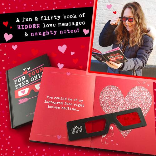 For all the things you really want to say... Simply put on the cardboard glasses to turn the sweet messages into saucy ones! Express your true feelings with this secretly seductive book that contains hidden love messages and naughty notes!