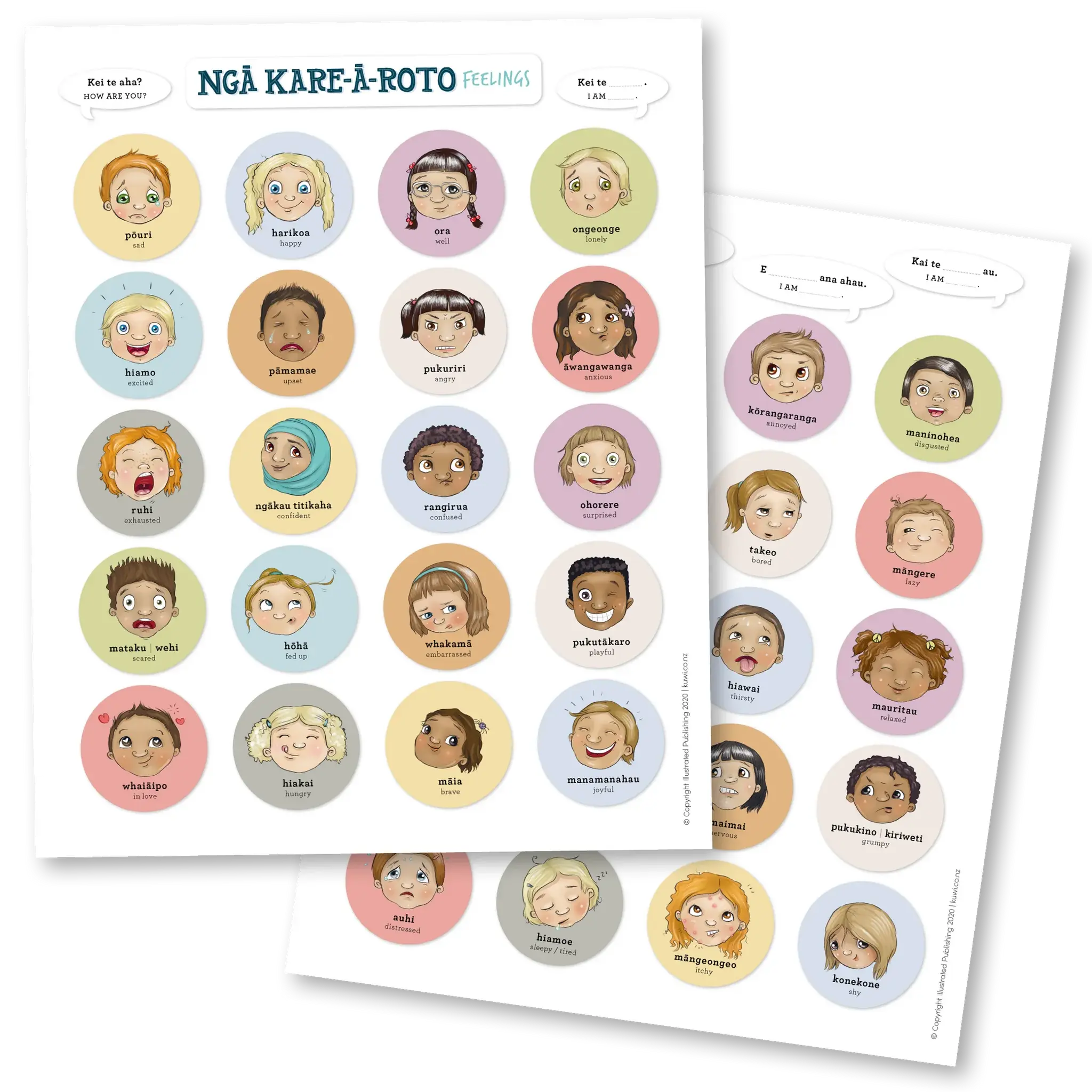 From #1 Best-selling and award-winning author and illustrator of the Kuwi the Kiwi series, Kat Quin. Magnet Set - Ngā Kare Ā-roto Me Ngā Āhua (Feelings & States), in te reo Māori and English. From the #1 Best-selling Kuwi & Friends Māori Picture Dictionary - He Papakupu Whakaahua 2 x Magnets sheets with pop-out circle 45mm magnets - 47 magnets. Designed for everyday use, for the whānau, for the kura and for all New Zealanders. Ages 3-100+. English Text and Illustration by Kat Quin Te Reo Māori Translation by Pānia Papa Nā Kat Quin ngā tuhinga reo Pākehā me ngā whakaahua Nā Pānia Papa ngā whakamāoritanga