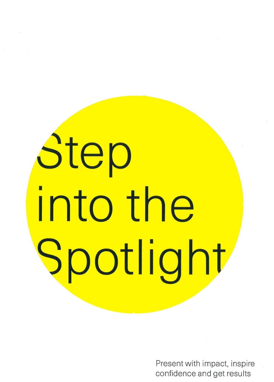 A practical how-to guide to crafting and delivering impactful presentations Now, more than ever, in this tech-saturated, digitally-[dis]connected world, authentic human connection is the competitive advantage that gives you or your team the edge. We all have this natural ability to connect, yet so many of us shy away from the spotlight as we believe we dont possess it. As it turns out, most of us are simply untrained in how to best harness our power. Filled with practical tips on every aspect of business presenting, in-person and virtual, Step Into The Spotlight provides a powerful, step-by-step process that guides people out of the shadows and into the spotlight, ensuring they present with impact, improve business presentation skills and inspire confidence.